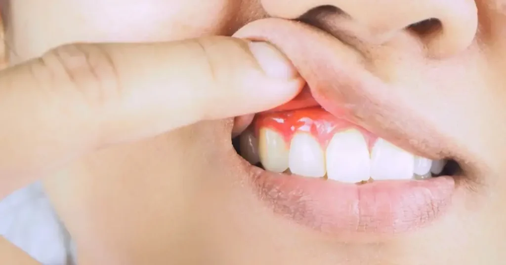 - Gums that appear red, swollen, or tender.